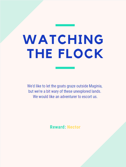 We’d like to let the goats graze outside Maginia, but we’re a bit wary of these unexplored lands. We would like an adventurer to escort us.